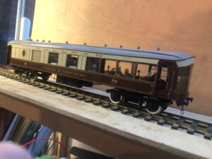 10mm scale including Oban service observation coach, these are a truly stunning and almost certainly unique rake of 5 Caledonian Railway Pullman coaches, it has been suggested that the bodies were made by Loveday but we have not been able to confirm that currently.