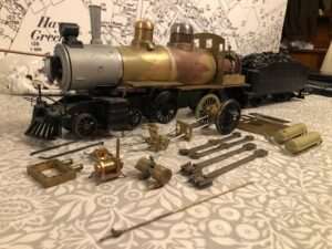 This 5″ gauge loco has been constructed from the Winston Engineering kit, the builder who was already an experienced model engineer and had a number of successful 5″ locos was very disappointed and commenced reengineering the model in line with the James Perrier design then available from Norman Spinks (now Blackgates) as can be seen much work has been competed to a high standard and largely all that remains is the final assembly.