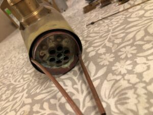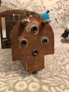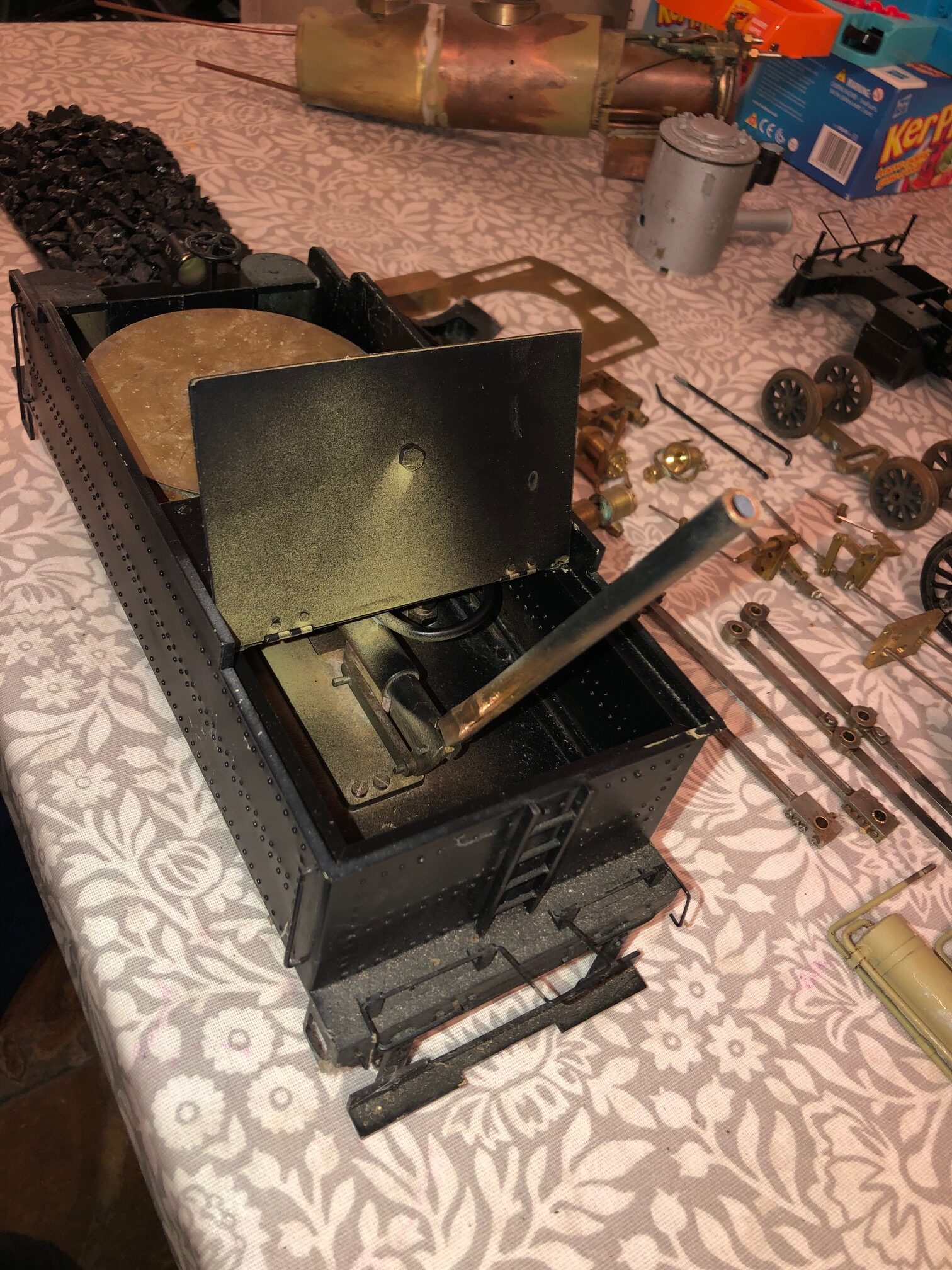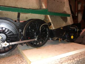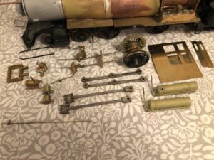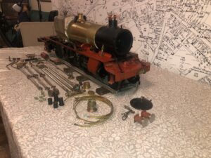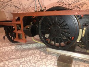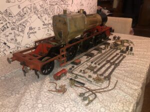 The loco is largely mechanically complete and the boiler has signs that it has been hydraulic tested, leaving only plate work, unfortunately due to family circumstances Trevor left model engineering and sold his workshop and unfinished projects to Ted Newbery a local model engineer and machine tool dealer.