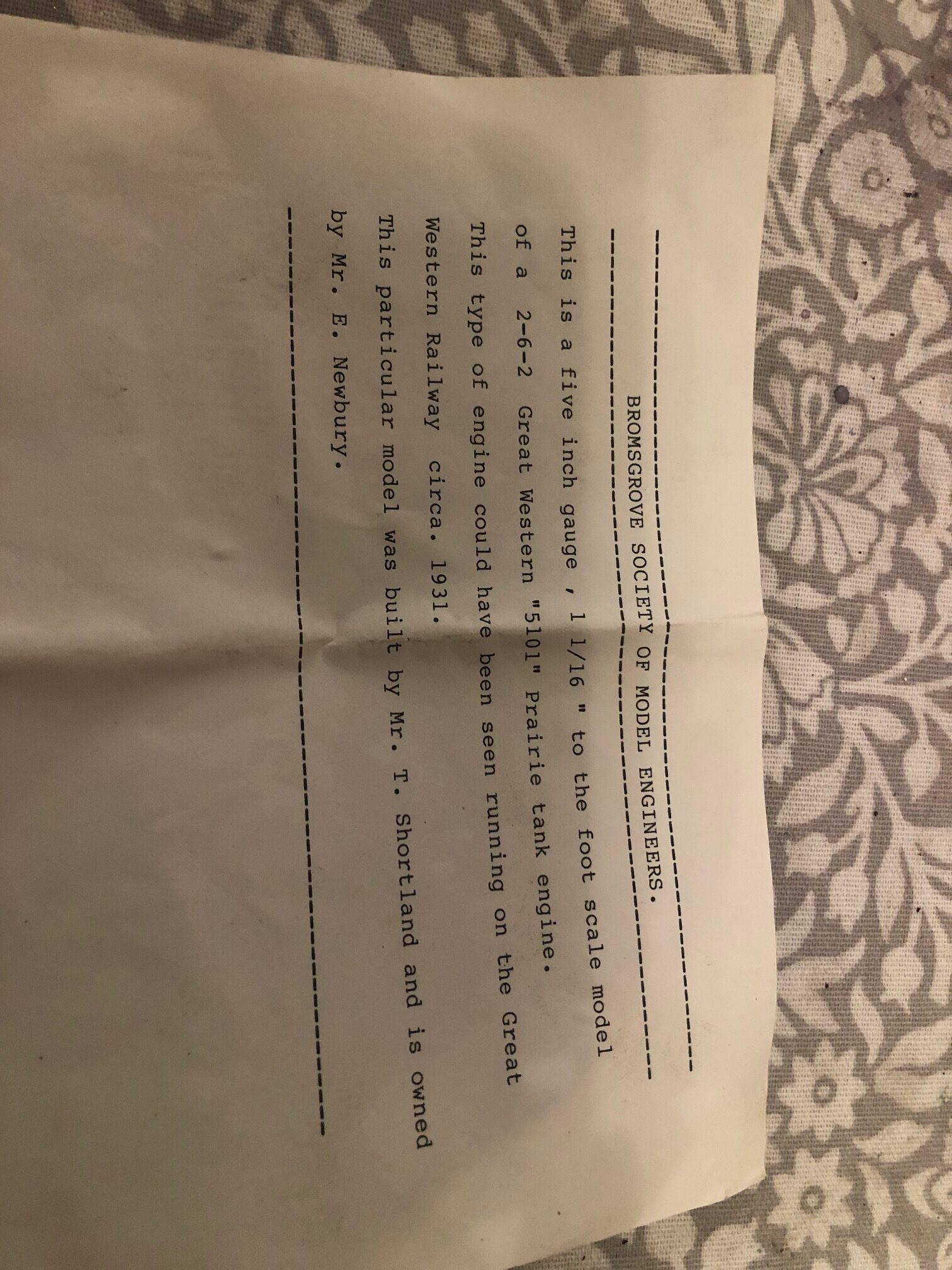 We have know of this superb locomotive for over 40 years and with the passing of its 3rd owner a rare opportunity has become available to acquire one of the the most superb GWR loco designs for 5@” gauge, this is the designers own locomotive developed from the 1960’s until made available by A J Reeves in the early 70’s this example is Trevor Shortland’s own work and included many annotated drawings, a number of his original pencil on tracing paper drawings and numerous parts from his development work including a fully fabricated cylinder block, 3 spare cylinder castings (not currently available from Reeves) and spare wheel castings.