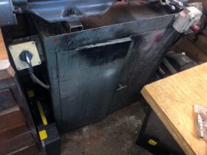 These machines are normally supplied without motor, this one has been well fitted with a substantial and well made mounting.